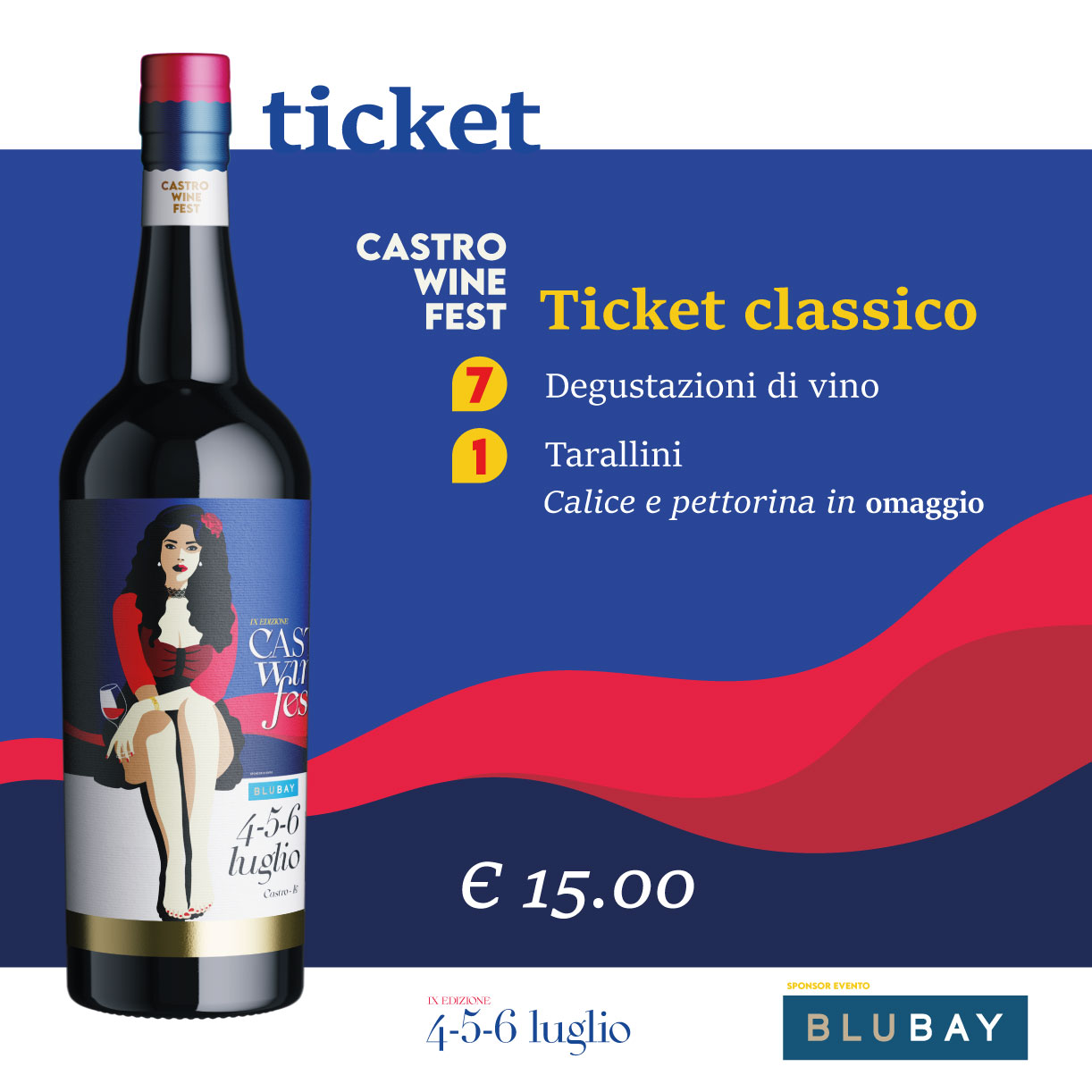 Il ticket classico consente la degustazione presso le 50 cantine presenti lungo il percorso che attraversa le due piazze del centro storico e le terrazze panoramiche del castello e presenti alla via del dolce e del pesce. In aggiunta 1 confezione di tarallini.